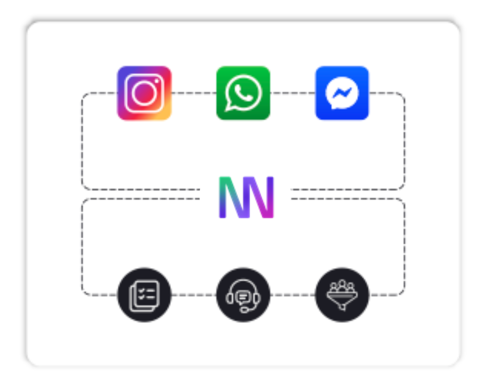 WhatsApp, Instagram e Messenger integrados ao seu processo comercial.