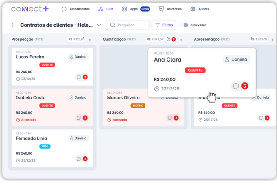 Produtividade Comercial: Qualificação automática de leads, follow-ups inteligentes e mais controle do funil de vendas.